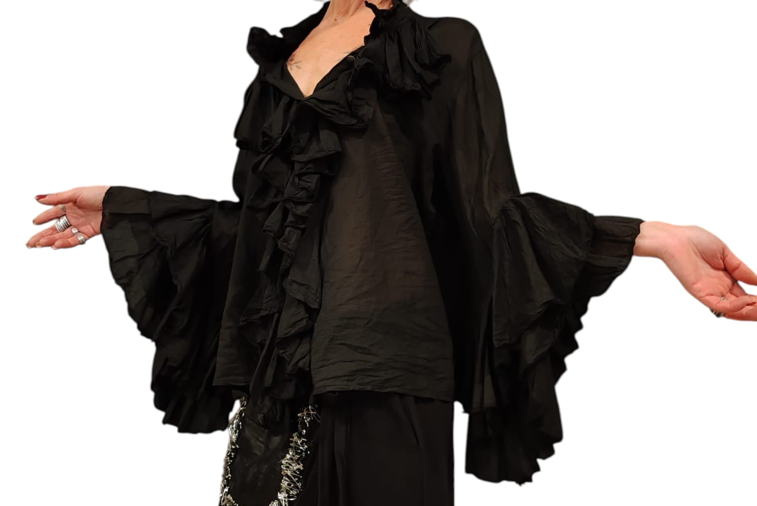 / CAMICIA 100% COTONE GARZATO CON VOLANT TAGLIA UNICA NOBLESSE OBLIGE -PROVOCATION MILANO-