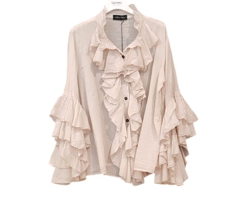 CAMICIA 100% COTONE GARZATO CON VOLANT TAGLIA UNICA NOBLESSE OBLIGE -PROVOCATION MILANO-