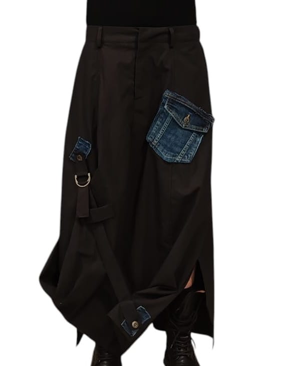 GONNA COTONE CON APPLICAZIONI PATCH CON ZIP- ELASTICO RETRO E PASSANTI TAGLIA UNICA -PROVOCATION MILANO-