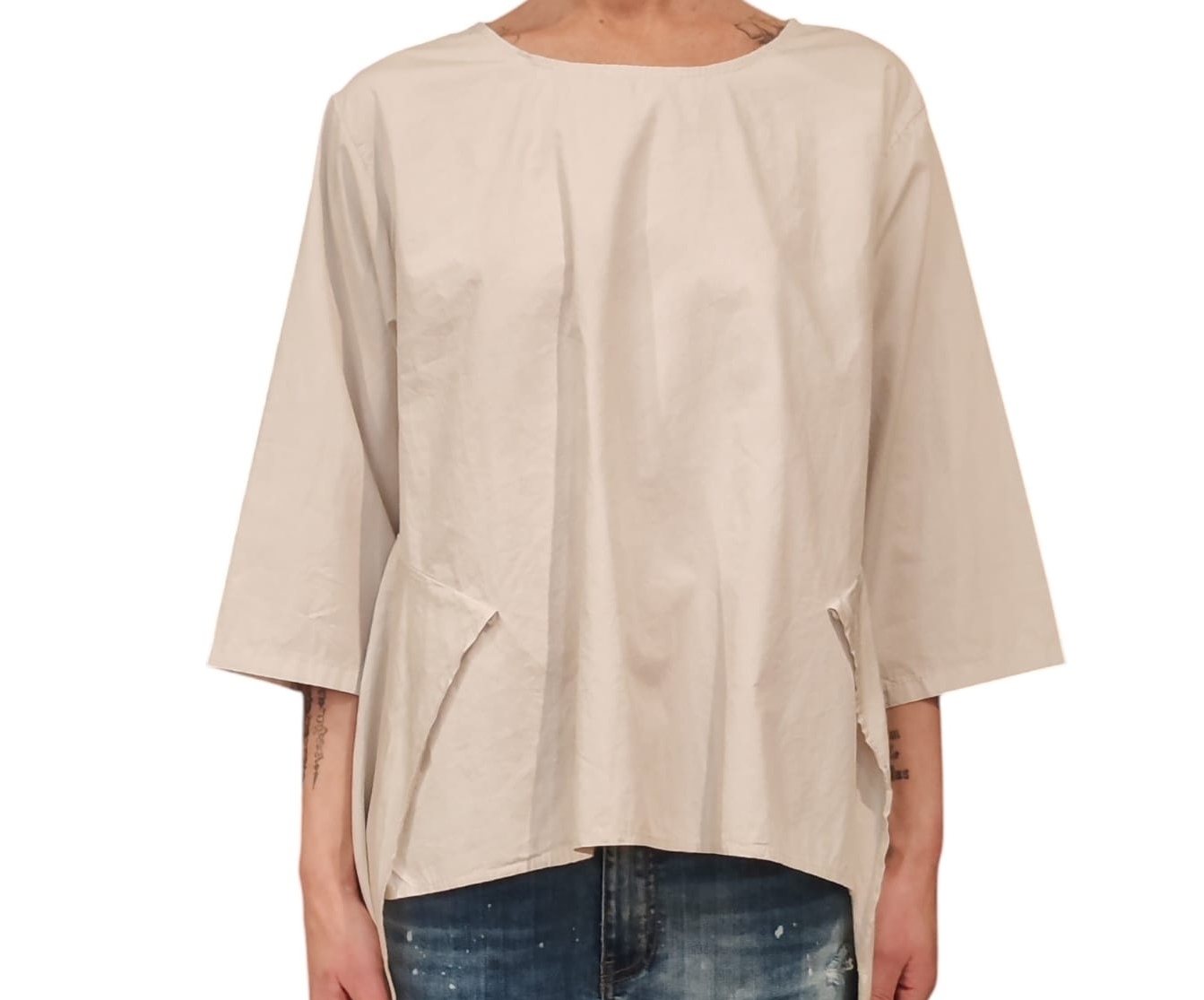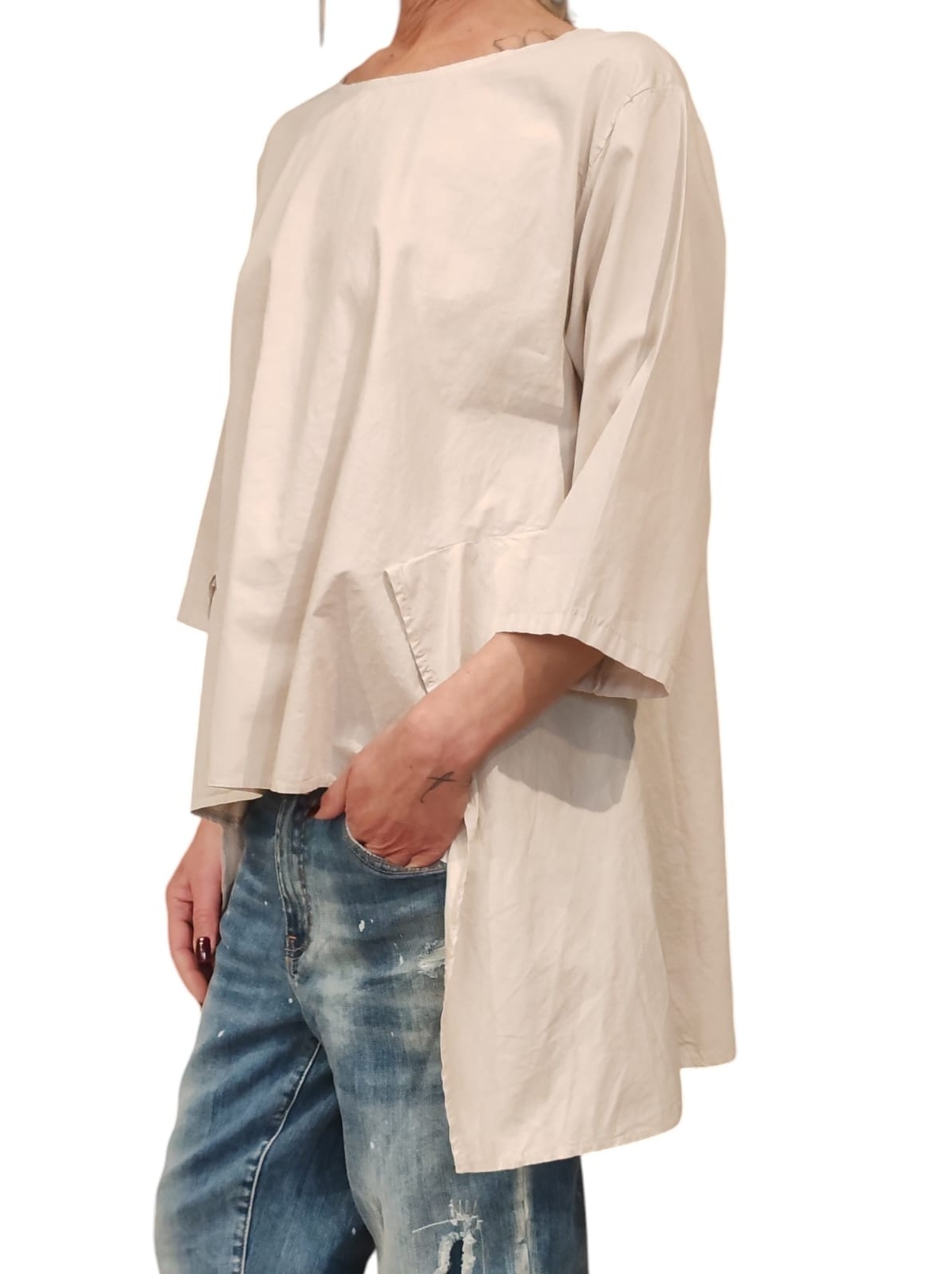 MAGLIA COTONE A TRAPEZIO MANICA A 3/4 DOPPIA LUNGHEZZA TAGLIA UNICA BEIGE NOBLESSE OBLIGE -PROVOCATION MILANO-