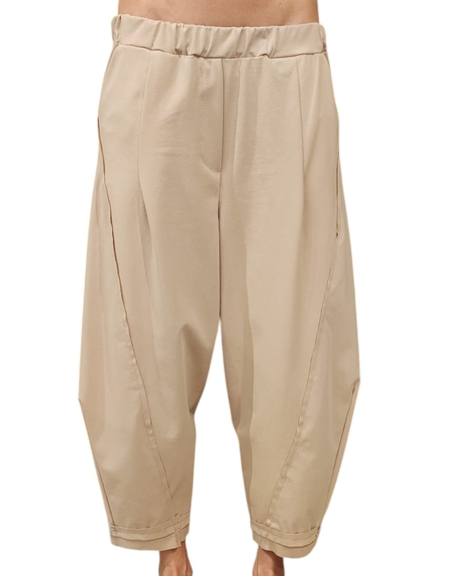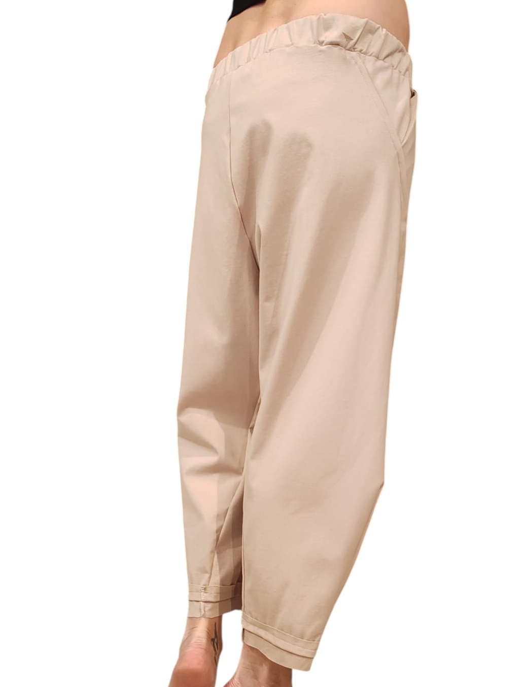 PANTALONE COTONE FORMA OVETTO CON ELASTICO E TASCHE BEIGE TAGLIA UNICA NOBLESSE OBLIGE-PROVOCATION MILANO-
