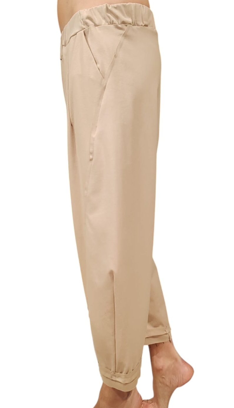 PANTALONE COTONE FORMA OVETTO CON ELASTICO E TASCHE BEIGE TAGLIA UNICA NOBLESSE OBLIGE-PROVOCATION MILANO- quantità