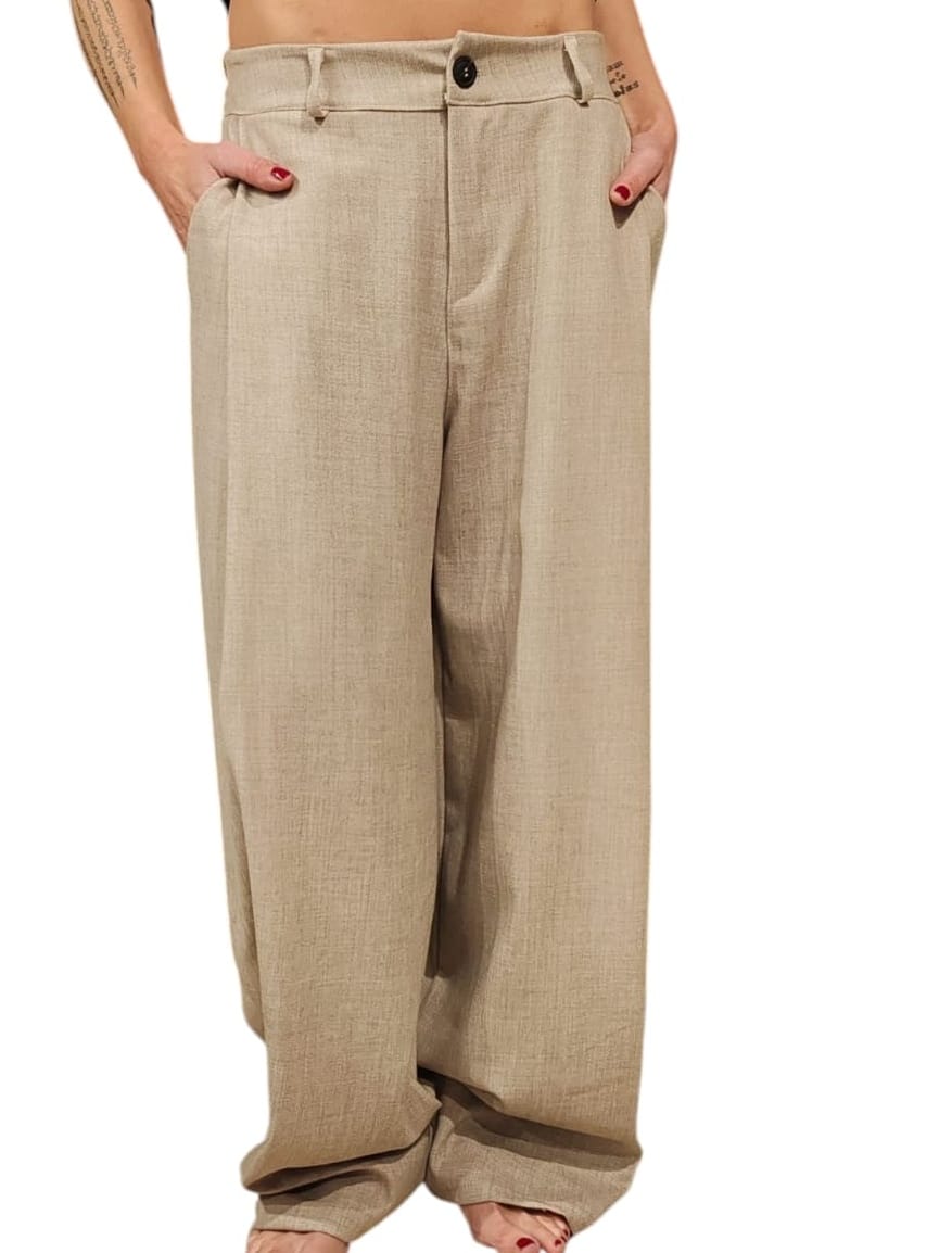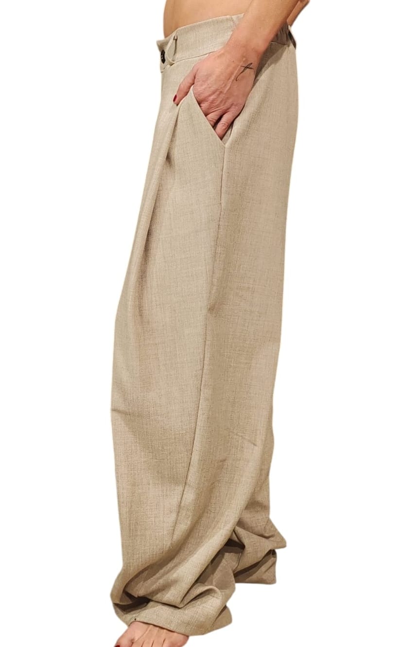 PANTALONE MISTO VISCOSA A PALAZZO CON TASCHE-ELASTICO-BOTTONE -ZIP E PASSANTI TAGLIA UNICA NOBLESSE OBLIGE-PROVOCATION MILANO-