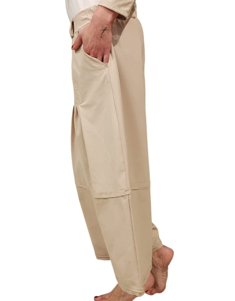 PANTALONE SIMILPELLE FORMA OVETTO CON ZIP - PASSANTI E TASCHE COLOR BURRO CHIUSURA NOBLESSE OBLIGE-PROVOCATION MILANO- quantità