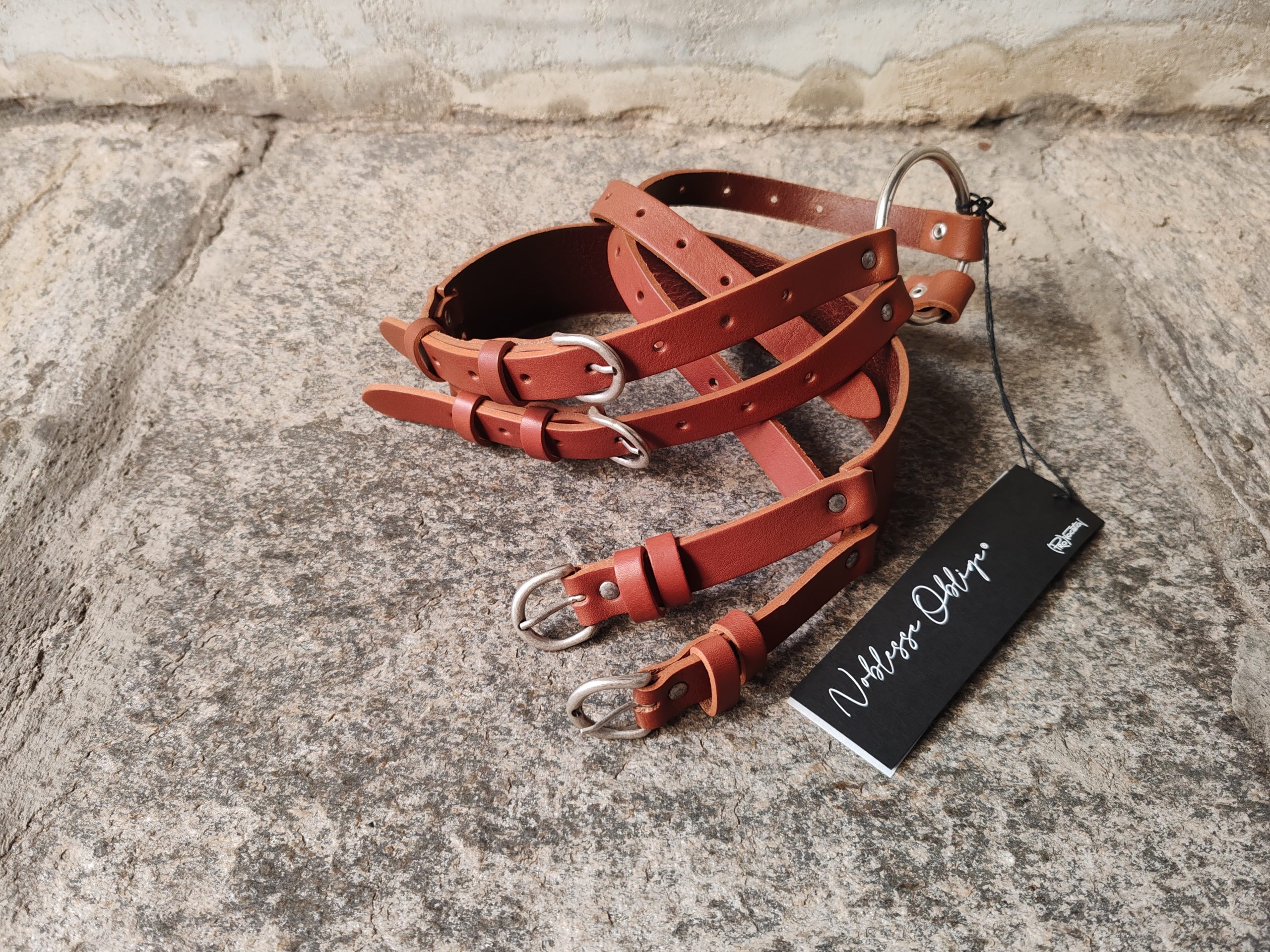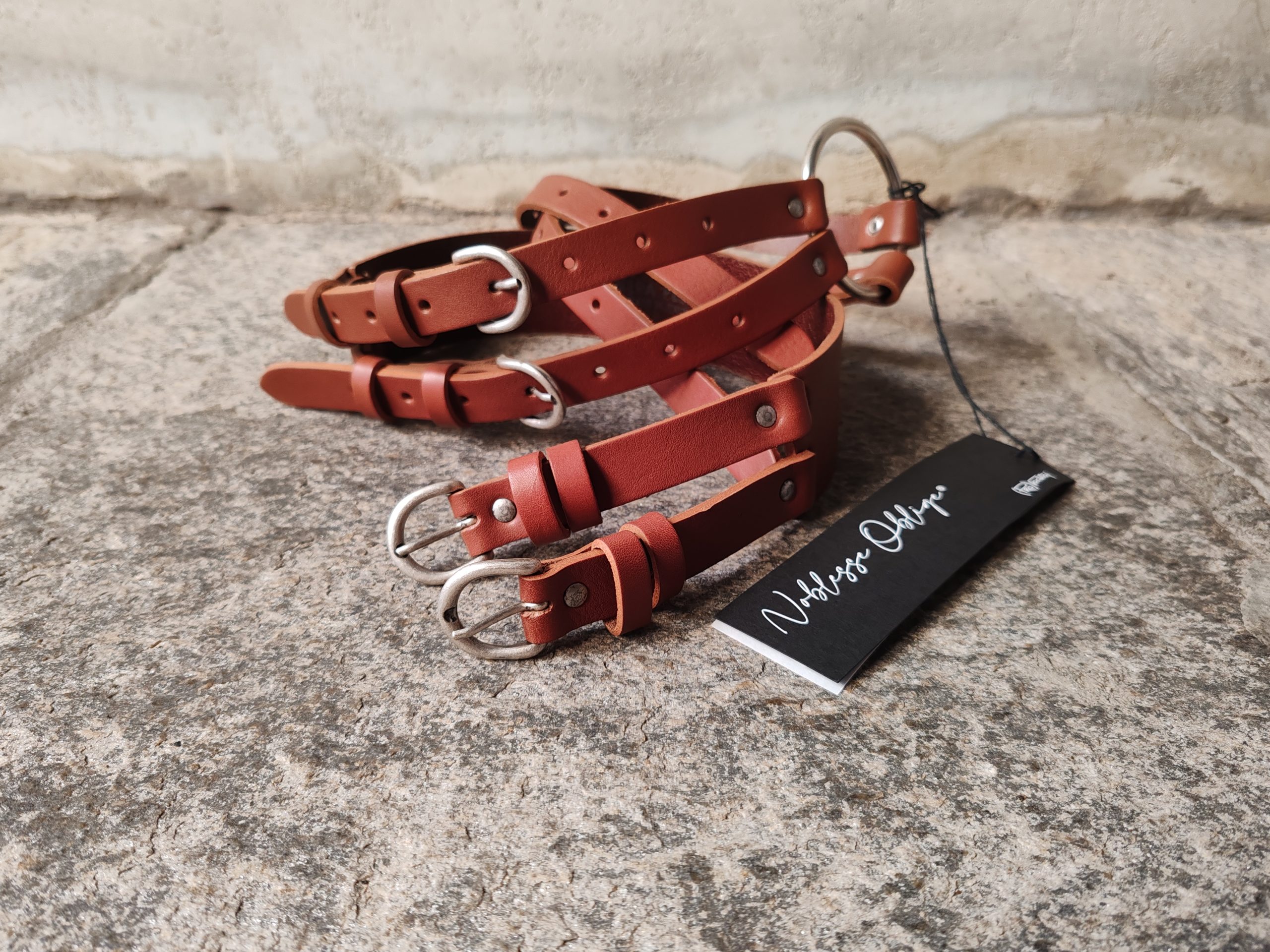 CINTURA PELLE DOPPIE FIBBIE COLOR CUOIO -PROVOCATION MILANO ACCESSORI- quantità