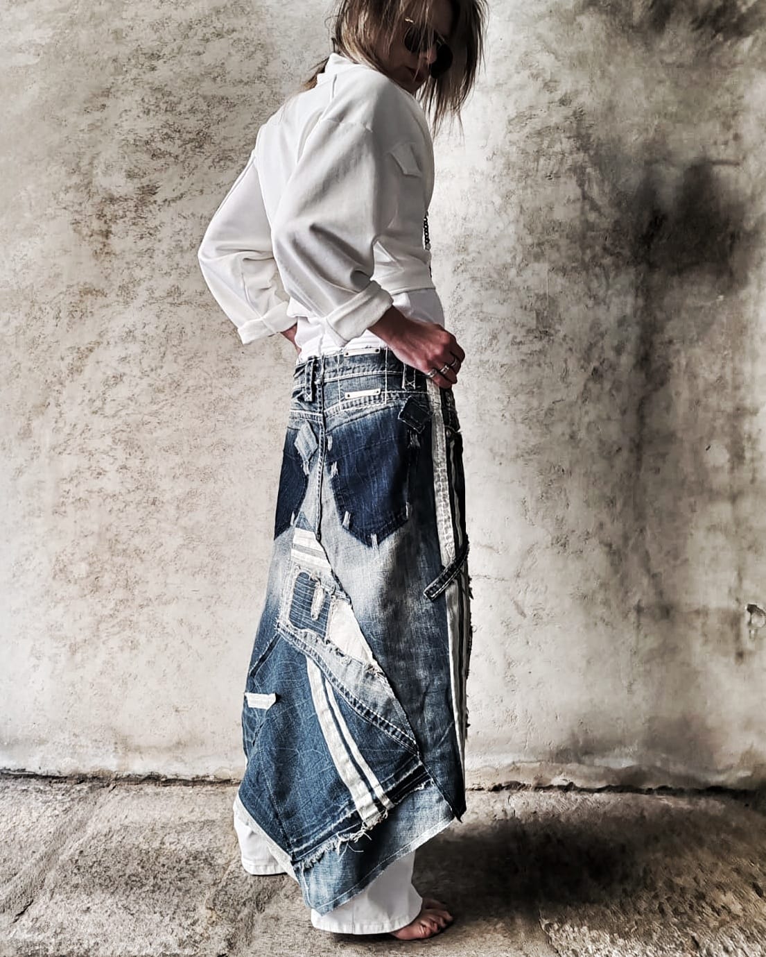 / GONNA/PANNELLO JEANS PATCH CON PASSANTI E BOTTONE TAGLIA UNICA -PROVOCATION MILANO-